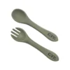 Pehmeät, elintarvikelaatuisesta silikonista valmistetut aterimet pienen lapsen ruokailuhetkiin. Tämä silikoninen aterinsetti on helppo puhdistaa käsin tiskaamalla, mutta se kestää myös konepesun.
